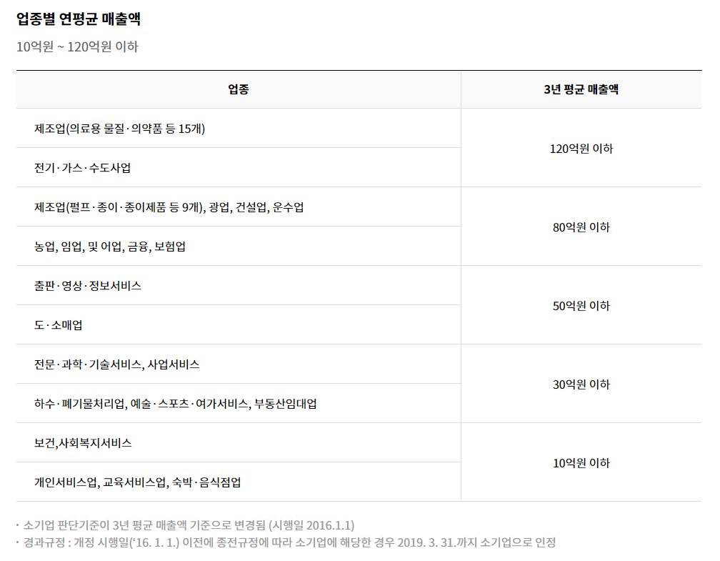 한편, 노란우산공제의 가입 대상은 사업체가 소기업, 소상공인 범위에 포함되는 개인사업자 또는 법인의 대표자입니다. 소기업과 소상공인의 범위는 근로자 10명 미만의 도소매업종 개인사업자 또는 50명 미만의 광업, 제조업, 서비스업 등의 대표자입니다. 또한 업종별 연평균 매출액이 10억 원에서 120억 원 이하여야만 가능합니다. 업종별 3년 평균 매출액과 가입 기준에 대해서는 아래를 참고하시기 바랍니다.