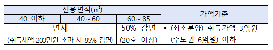 ✅ 취득세 : 임대사업자가 85㎡ 아파트 최초로 분양받은 경우 면적 등에 따라 50~100% 차등감면